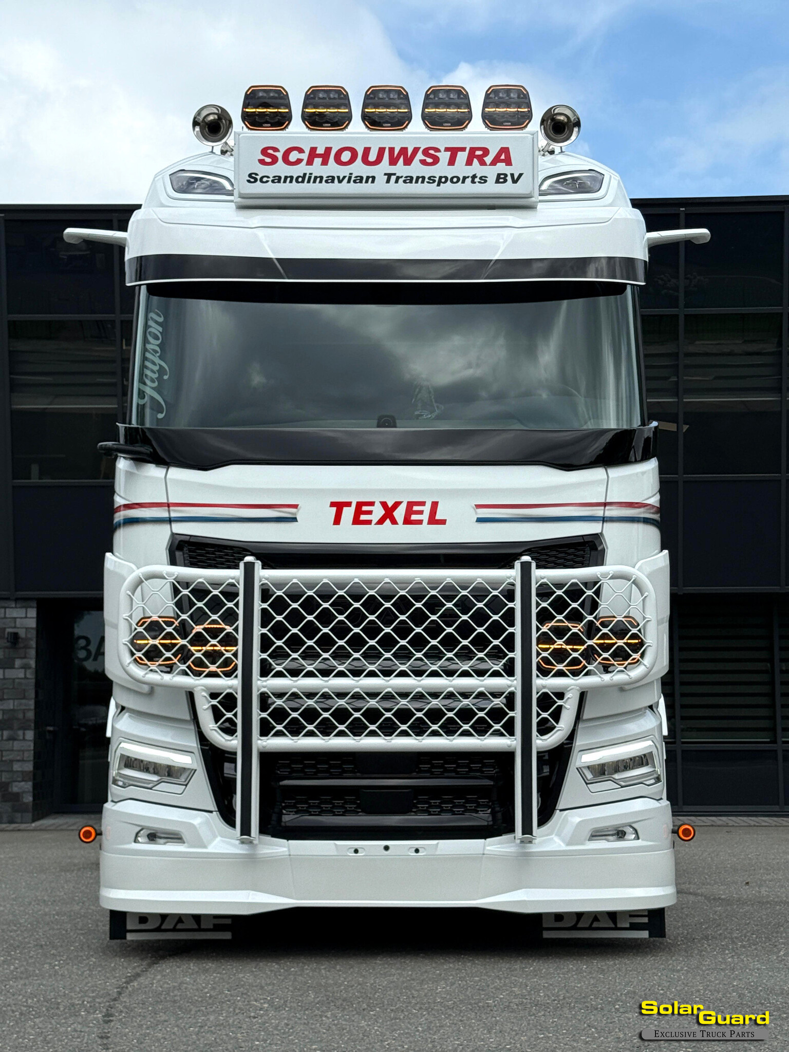Solar Guard Exclusive Truck Parts a fabriqué ce spoiler avant pour les DAF NGD XF, XG et XG+. Il suit les mêmes lignes que notre spoiler de type 1 mais est beaucoup plus profond (20 cm). Disponible avec deux ou cinq positions de LED pour des options d'éclairage supplémentaires. Forme nette, solide et cohérente avec une finition détaillée, un montage simple et une sensation de fiabilité.