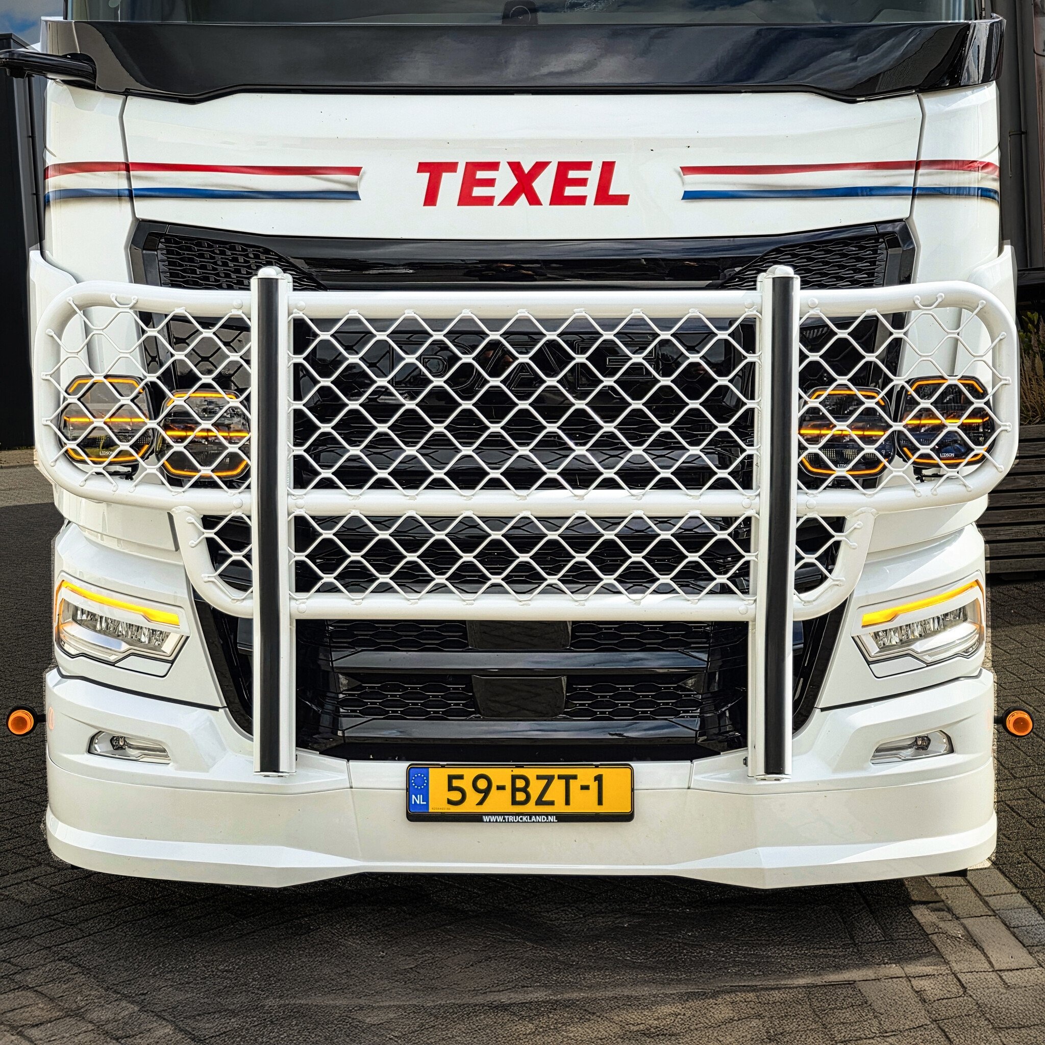 Le Pare-buffle tout-terrain Hypro pour DAF NGD XG et XG+ donne à votre camion un avant propre et solide. Il est fabriqué en aluminium léger et pèse environ 35 kg. Le design suit les lignes originales de la cabine et se connecte comme il se doit depuis l'usine. Vous pouvez vous attendre à une finition résistante et détaillée qui conserve un aspect net et cohérent sur la route tout en ajoutant une touche haut de gamme à l'apparence du camion.