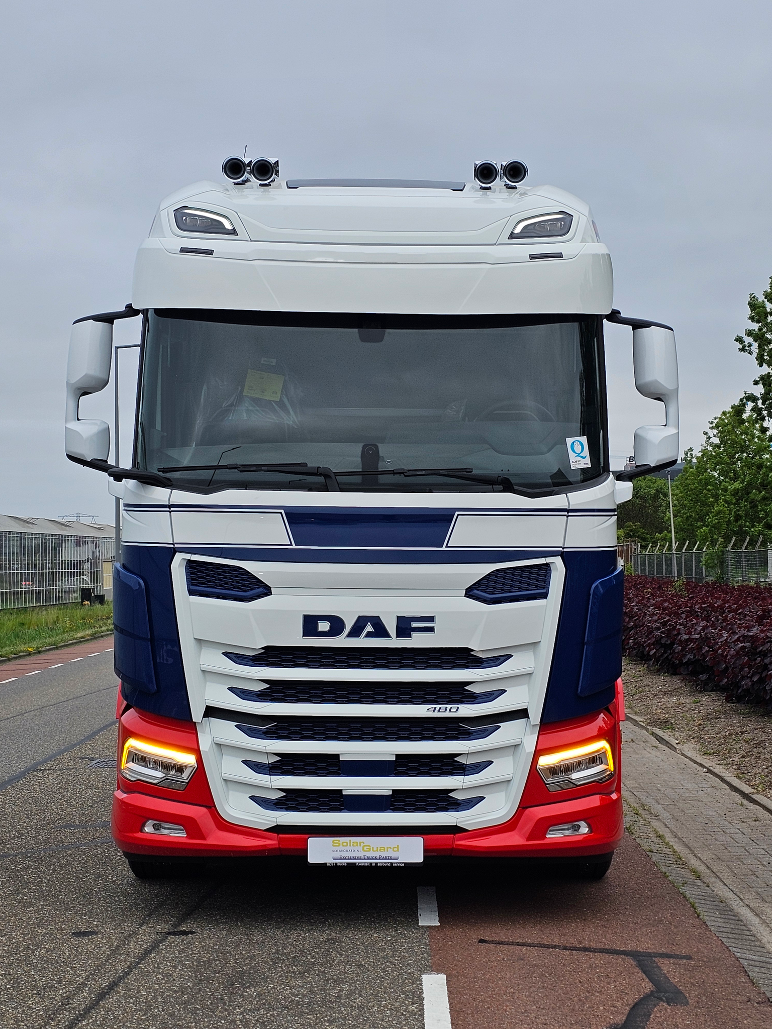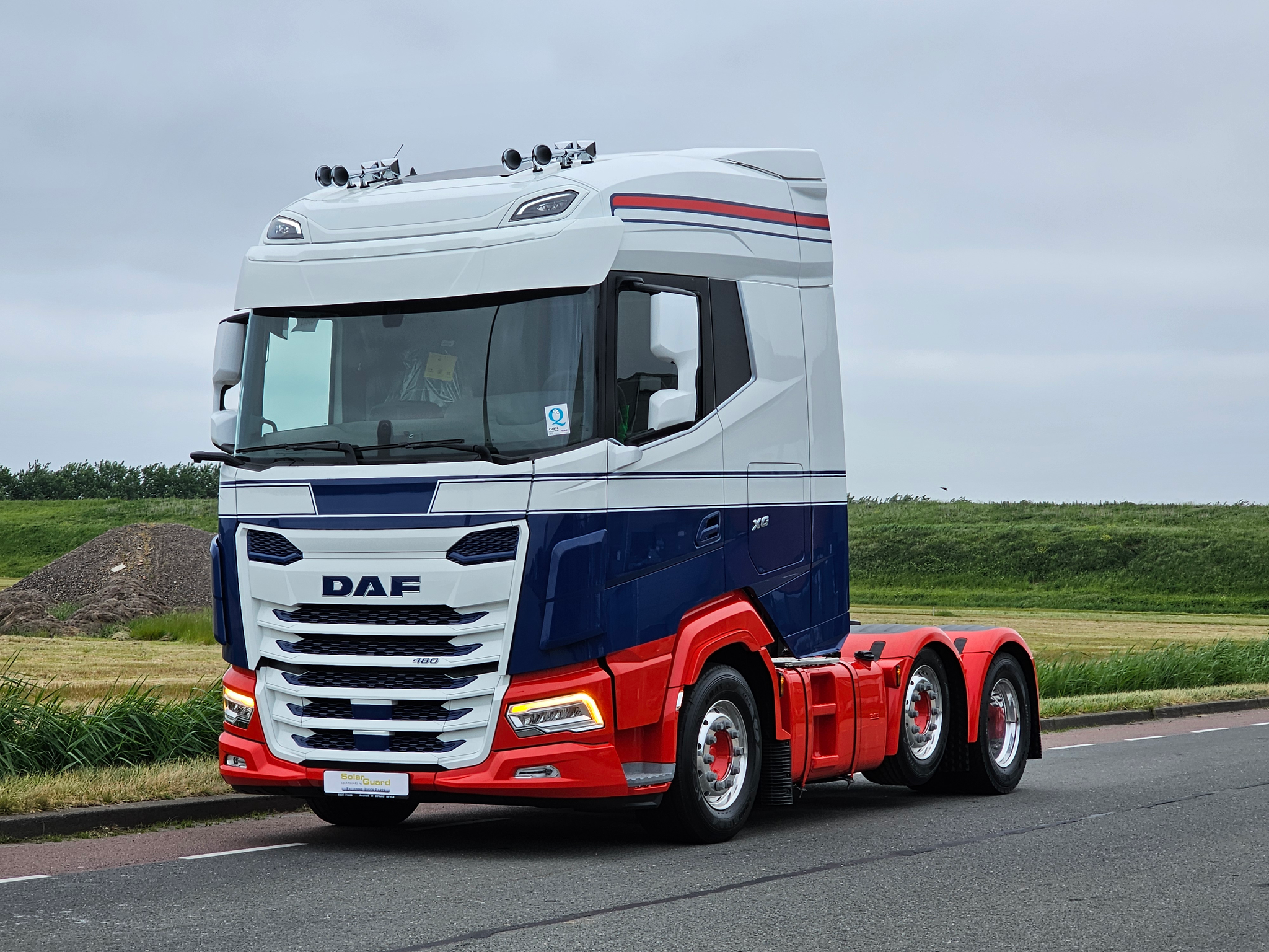 Le pare-soleil Solar Guard Exclusive Truck Parts Type 3 est conçu pour les cabines DAF NGD XF et XG. Il suit les lignes originales avec un aspect propre et solide et une finition détaillée. Les mêmes lignes soignées que le Type 1 mais avec un dessous arrondi, disponible avec 2 ou 5 positions de LED et une profondeur de 35 cm. Si votre camion est équipé d'un rétroviseur avant, commandez également une rallonge de rétroviseur.