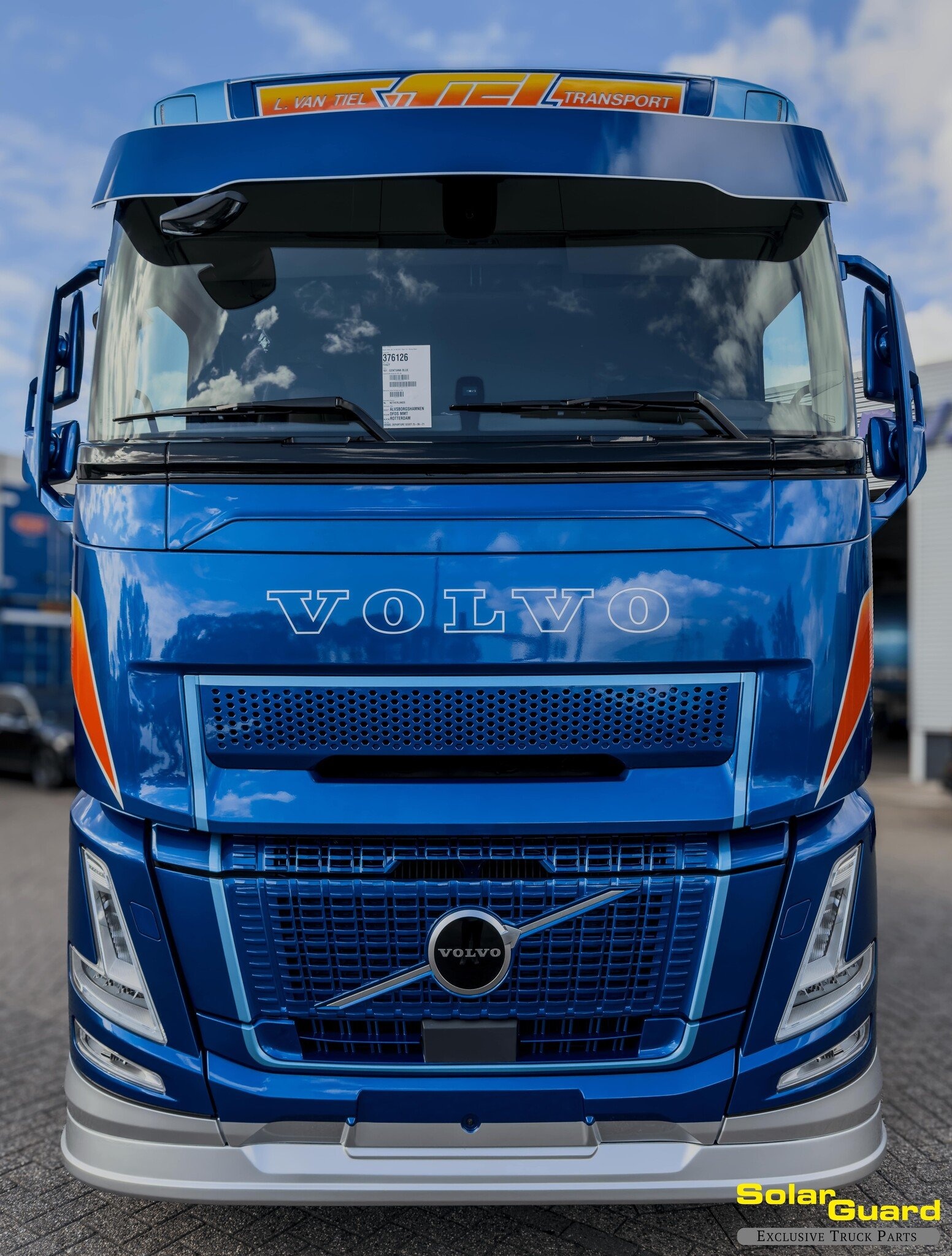 Solar Guard Exclusive Truck Parts présente le Spoiler avant Volvo FH Aero Type 2. Il donne un look propre et solide qui suit les lignes originales du FH Aero. La conception simple et durable offre une finition détaillée et un ajustement fiable dans le cadre des pièces pour camions et des accessoires de style pour camions de Solar Guard. Disponible en variantes avec 2 ou 5 positions de lumière LED ou talmu jaune et une profondeur de 14 cm, ce type 2 est 3 cm moins profond que notre type 1 et se connecte comme il se doit à partir de l'usine.
