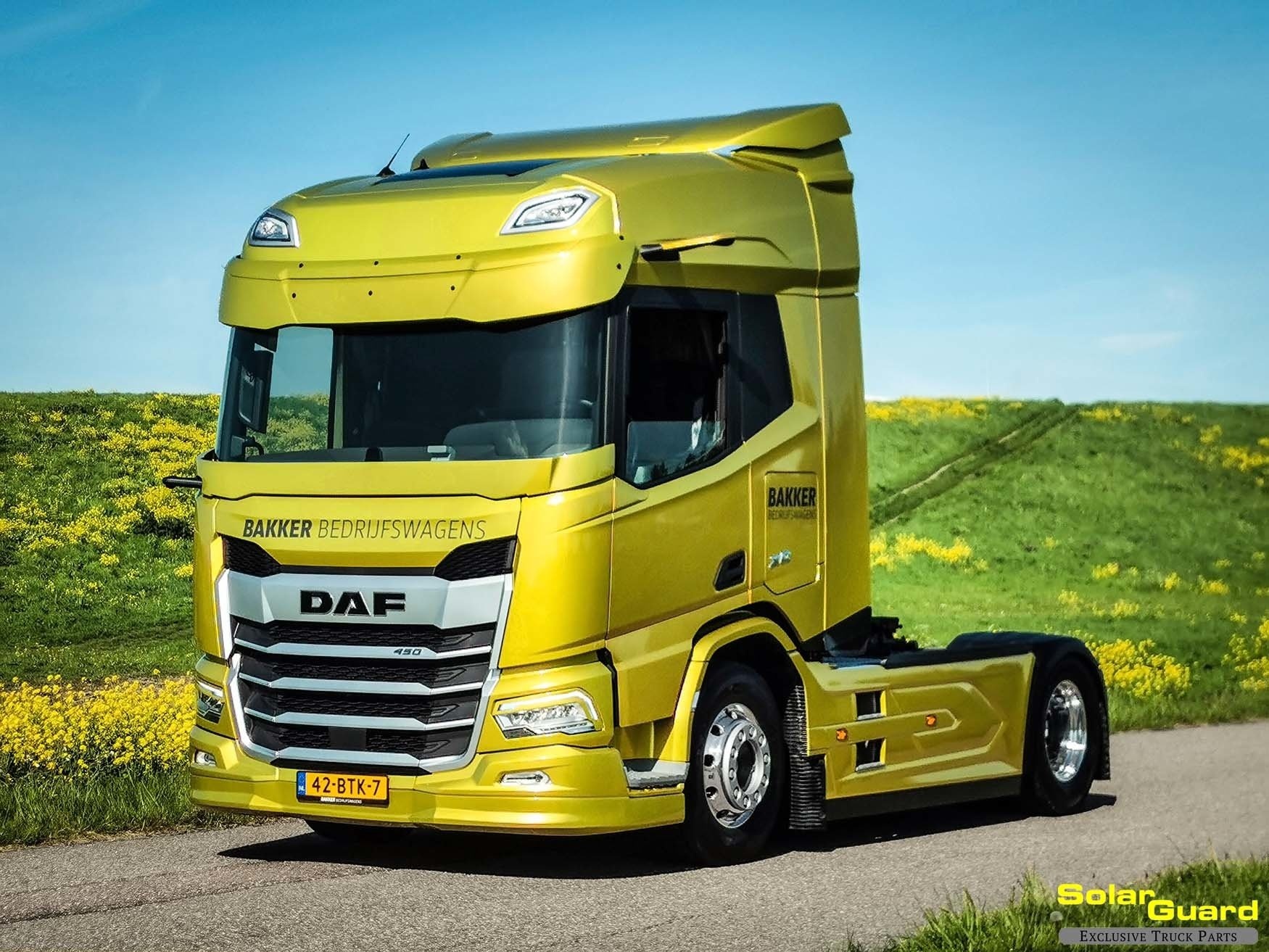 Solar Guard Exclusive Truck Parts a construit ce Spoiler avant pour le DAF NGD XD. Des lignes épurées et une finition détaillée donnent un avant soigné et de qualité. Il suit les lignes originales du camion. Il est robuste, simple et fiable pour une utilisation quotidienne.