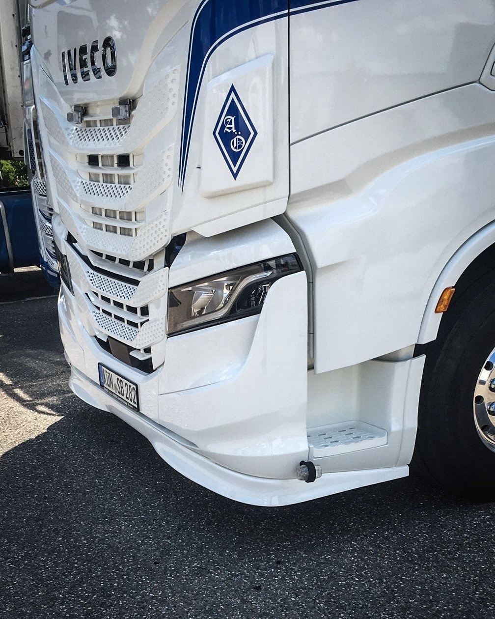 Solar Guard Exclusive Truck Parts propose ce Spoiler avant spécialement pour l'Iveco S-Way. Des lignes nettes, solides et cohérentes qui suivent les lignes originales du camion. Construction en polyester robuste fournie en Gelcoat blanc, d'une profondeur de 13 cm, qui se poursuit sous le marchepied. Le montage est simple et l'alignement net. Il est disponible dans une variante avec deux positions d'éclairage LED ou avec un talmu jaune, et une finition détaillée avec un aspect de première qualité.